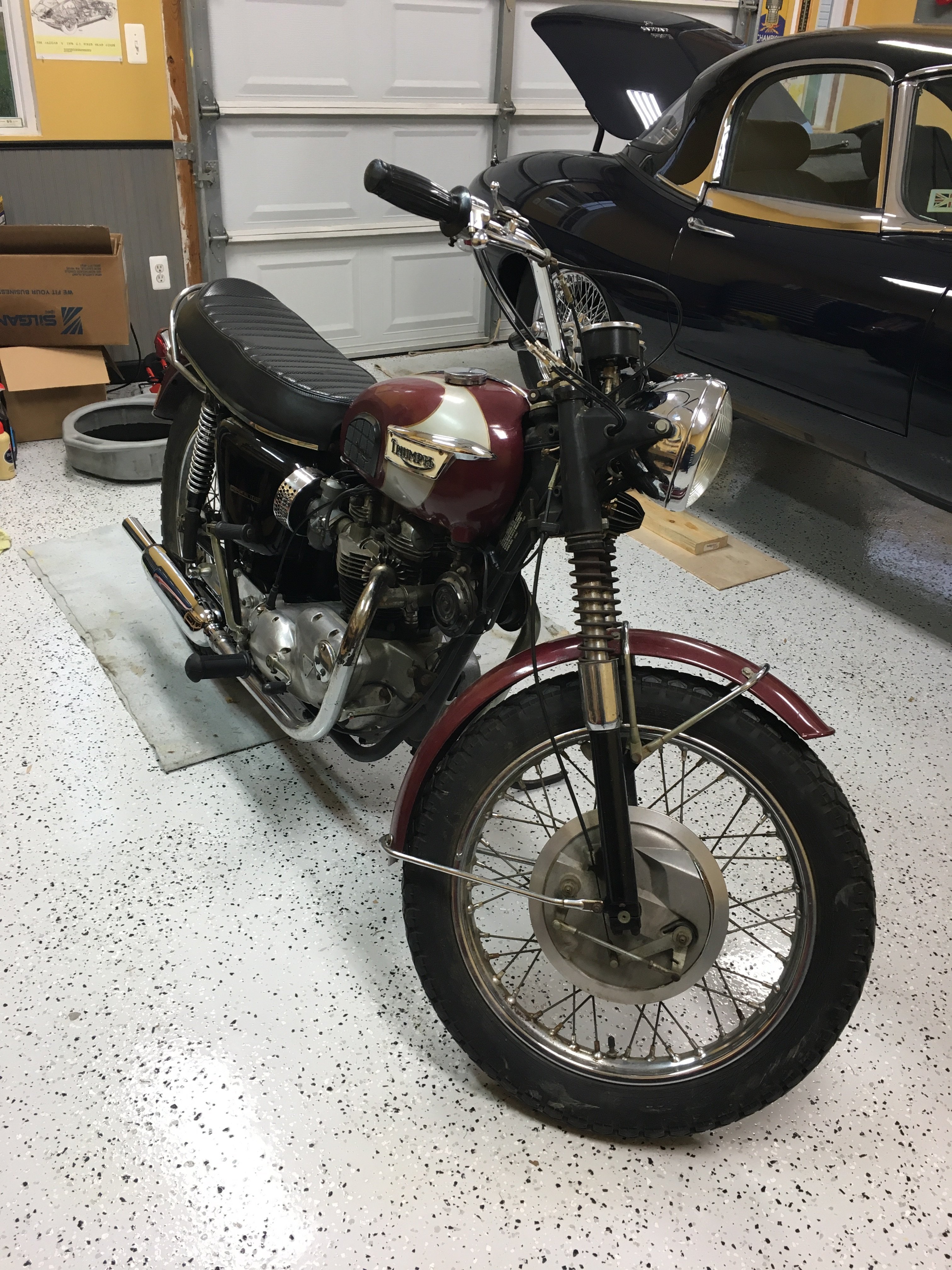 Yes, I'm one of those guys "keep 'em original" kind of guys.....points, condenser, no upgrades. I do whatever is necessary to maintain them using OEM parts wherever I can source them . It's been a challenge with the old car 'cause the repro parts are mainly junk so now I'm hunting for Triumph NOS items along with E-Type NOS items. I enjoy working on them as much as I do driving and riding. It's challenging but very rewarding to repair / restore resurrect old parts motor cars and bikes.