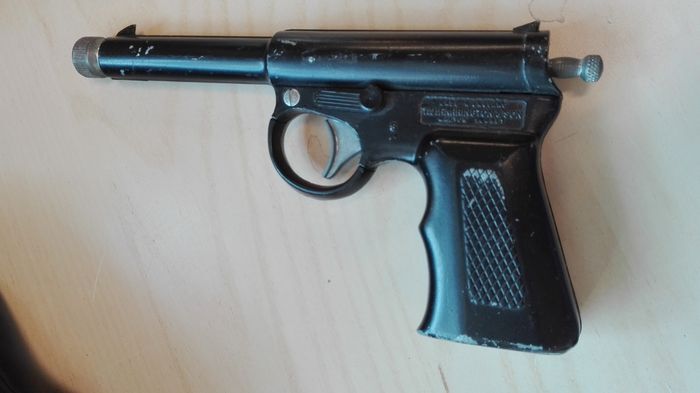 I had both and we were allowed to play with the air rifle as if it were a toy gun. I would have been 10 or 11 years old. My grandfather, a vicar, had seen the "bad lad" who lived next door bury them at the bottom of his garden before the police came round. He dug them up whilst they were all out and gave them to me