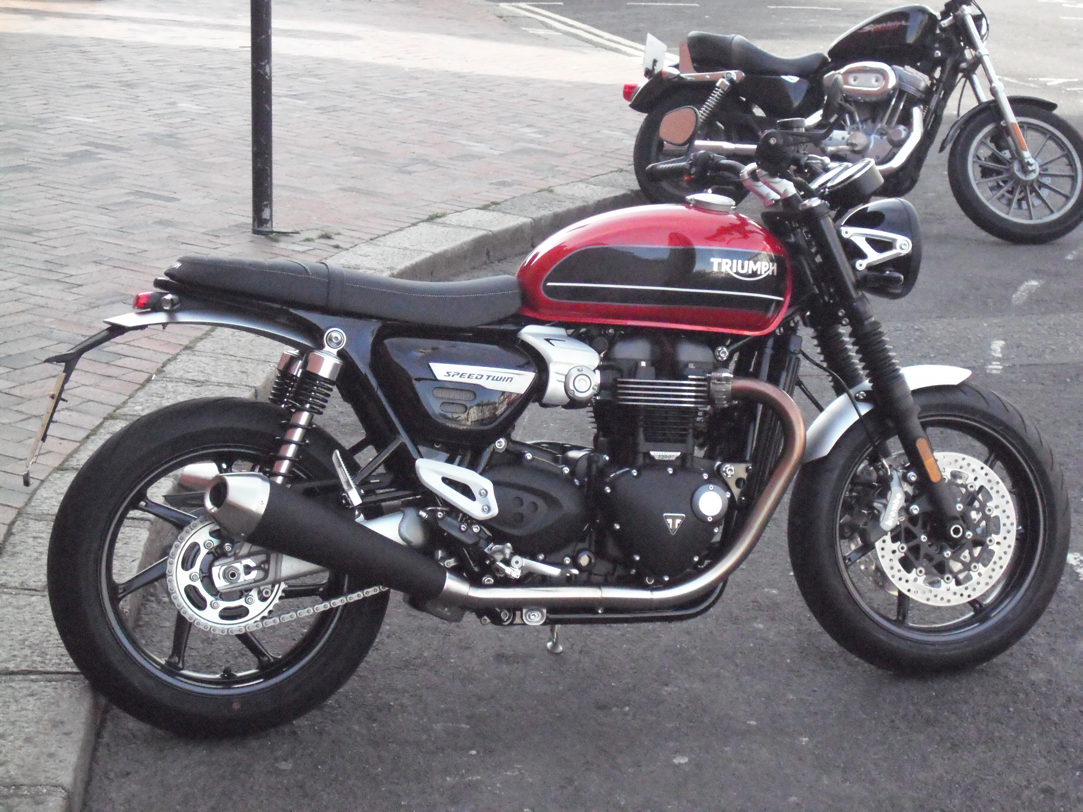 Tosgha. Looking good and the photo is great. Quite good as having just picked it up I thought it would take some time before you got of it to take a picture. How's the grin on your Face. Triumph and Nursey are working on a fix for it. Some peeps are saying it gets uncomfortable when people are staring and thinking he's got a new Triumph. Ride Safe & Enjoy. Joe.