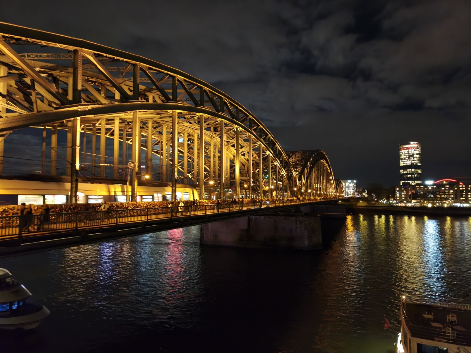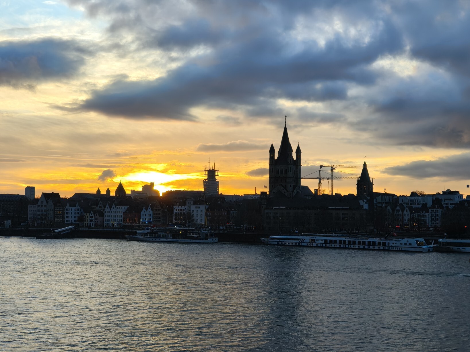 A first view over the river Rhein to the old town of Cologne.