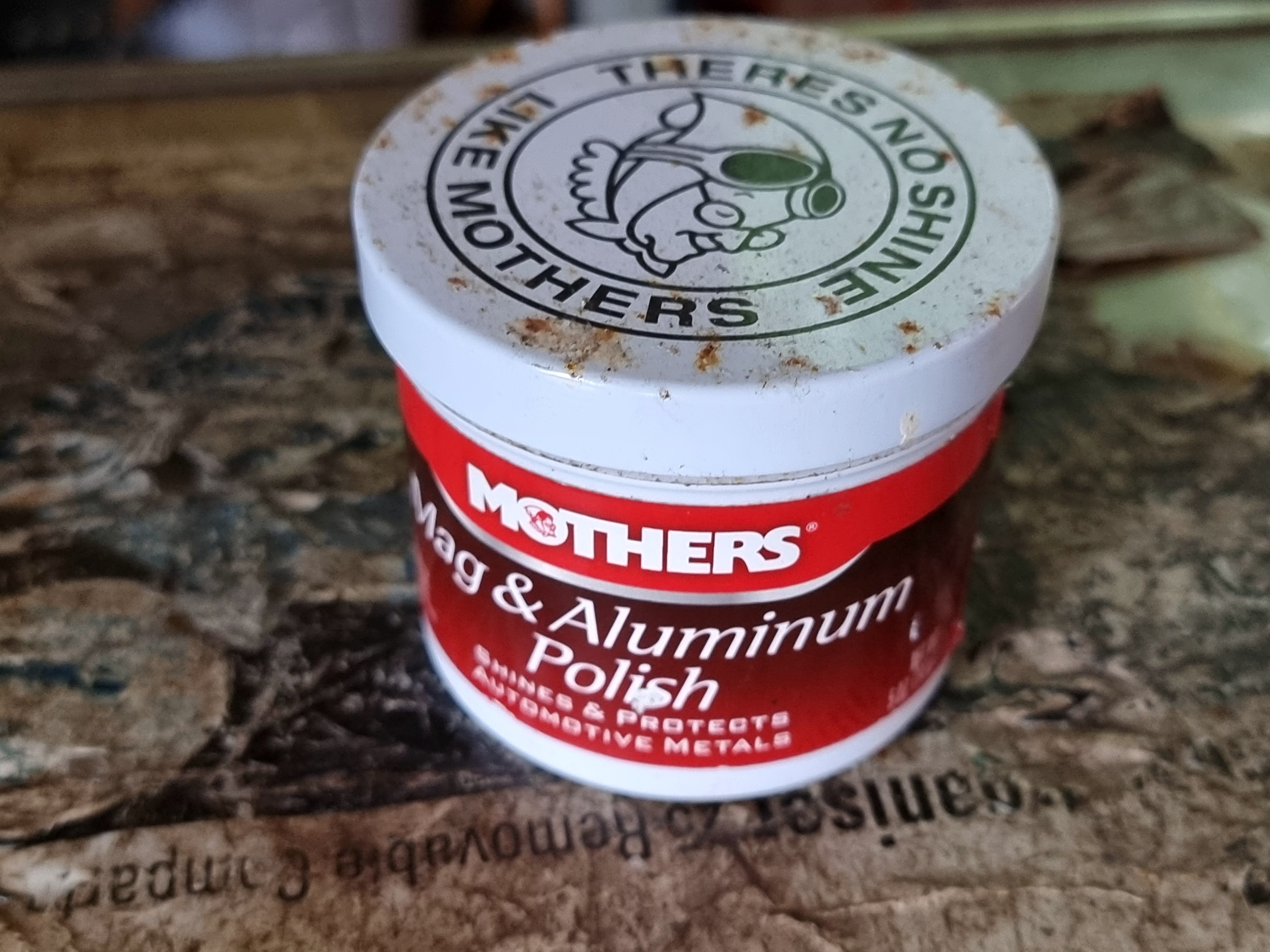 Thought id share a product I've just come across and never heard of before it's a chrome and alloy polish called mother's I have started to use it on my old firestorm which I haven't moved out of the garage for over five years and so the alloy heelplates swinging arm and other frame attachments have started to put and look unsightly and I want to put it back on the road this summer for the odd occasion the Tiger just won't blow the cobwebs away anyway this polish I just typed it in on Amazon aluminum polish and this product popped up with all the usual other well known brands Auto Sol and a motul product which I bought at the same time well I did a test area on the heel plate and part of the exhaust pipe the motul which I tried first did not perform as hoped so I tried the mother's and wow was I impressed why haven't I heard of this polish before well needless to say it performed as the reviews suggested and so just in case I ordered a second pot because if I haven't heard of it the reason for this could be because it works it doesn't hang around on shelves very long Well I thought of the bonni riders and speed twins with the chrome work and chrome spoked wheels