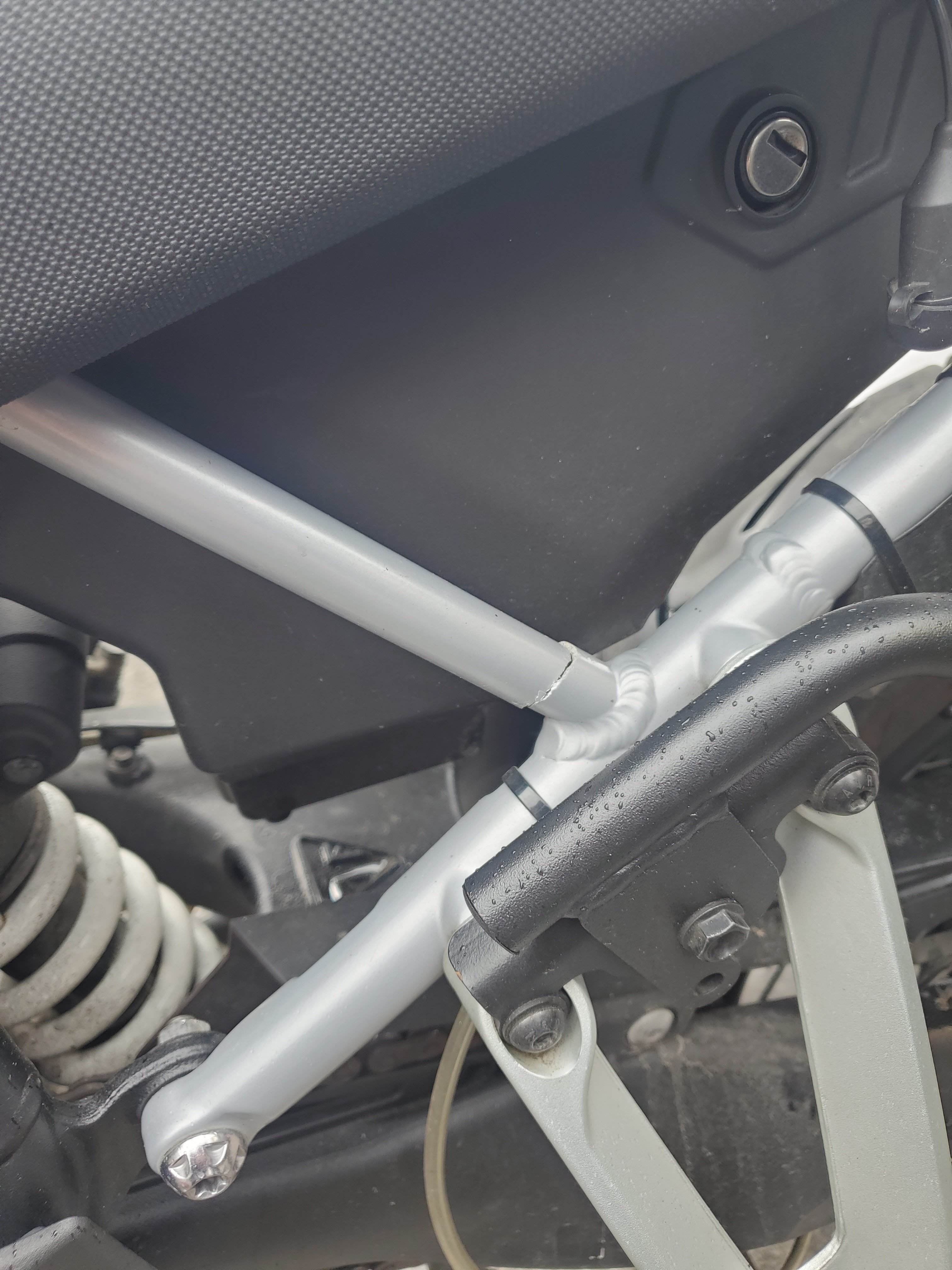 Hi All! New to the forum, currently half way through a trip through the Italian Alps on my 2020 Tiger 900 Rally Pro when disaster struck today. Literally at the very top of Stelvio pass, on the way up I'd noticed a rubbing noise from my back brake. Stopped and checked but all seemed to look OK. Only when I reached the top did I notice a complete shear through the left hand subframe, vertical strut, just above the joint which lands between footpeg and pannier mounts. We were able to get recovered by a local mechanic (Bobo's at Bormio - super sound guy) who reckons he can sort it tomorrow, enough to get us home where I'll take it up with triumph and my insurance. Both me and our lass are only about 10.5st each, and the panniers are givi trekker aluminium ones being sold by triumph with their badge on, packed only with clothes - no extra heavy gear or anything. We've only covered proper roads, had no bad bumps or anything! I just can't believe it! I had the old mk1 for 8 years without a hiccup, and only upgraded last year... Now this! I've seen a similar case posted on Reddit, just wondered if anyone else had had or heard of anything similar happening? Cheers