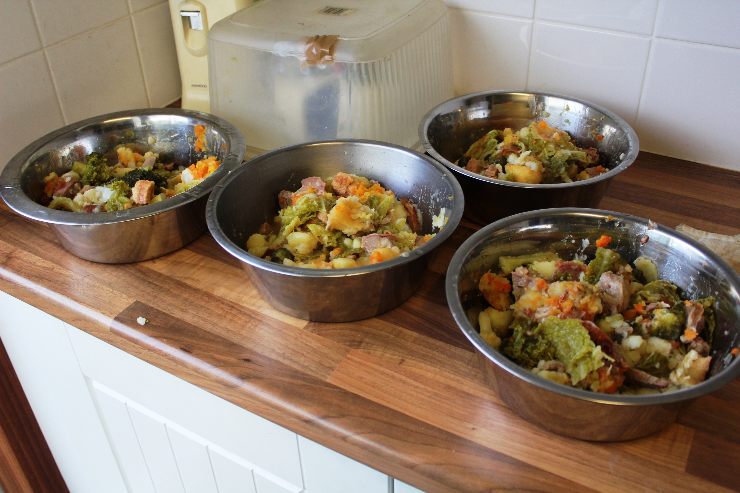 It takes months to plan hours to cook.................... Full Christmas dinner, turkey leg each, baked & roast tatties, yorkshire pud, brussels, cabbage, carrot/swede & gravy,............ Gone in sixty seconds! But we get a peaceful afternoon! Incpot got the biggest bowl full, his 1st Christmas with us! MERRY CHRISTMAS ALL!!