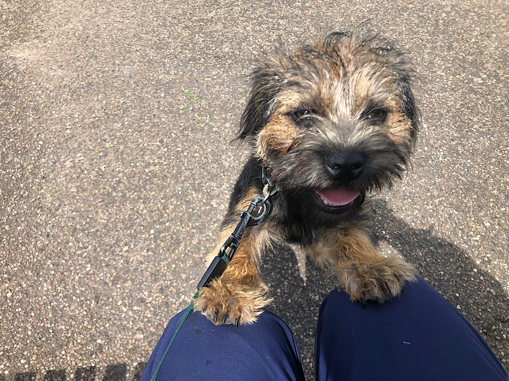 This is Stan, my Sister's 6 month old Border Terrier, whom we're dog sitting while they're away. We haven't found his "off" switch yet so it's a full-on job! He goes home on Sunday:grinning:.