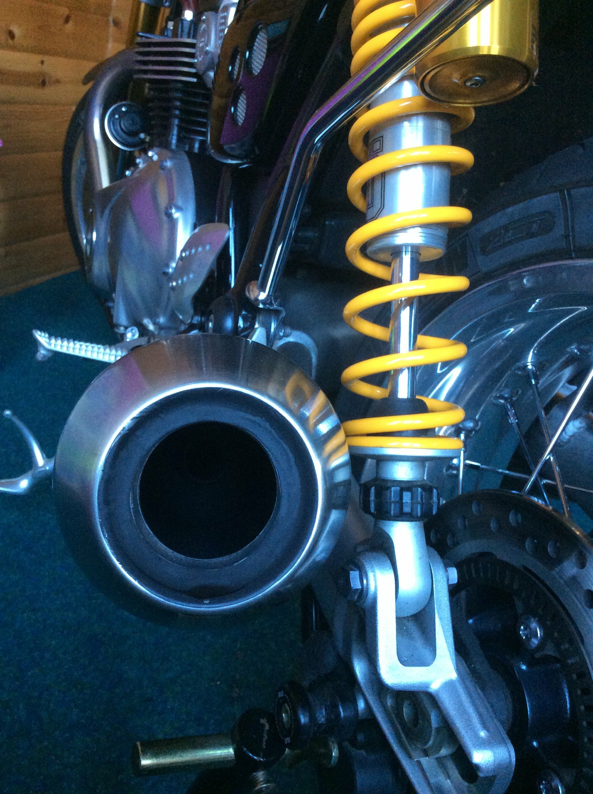 Since this picture the side casing has been blacked and the front fender and mounts are in for a nice gloss/matt black spray, have 2 more custom seats being made one single and one double that Im excited about.....watch this space. Then it will have a custom paint job in the winter or next year, Rims will be powder coated black when it has its next set of tyres on and the replacement chain (once worn) will be gold
