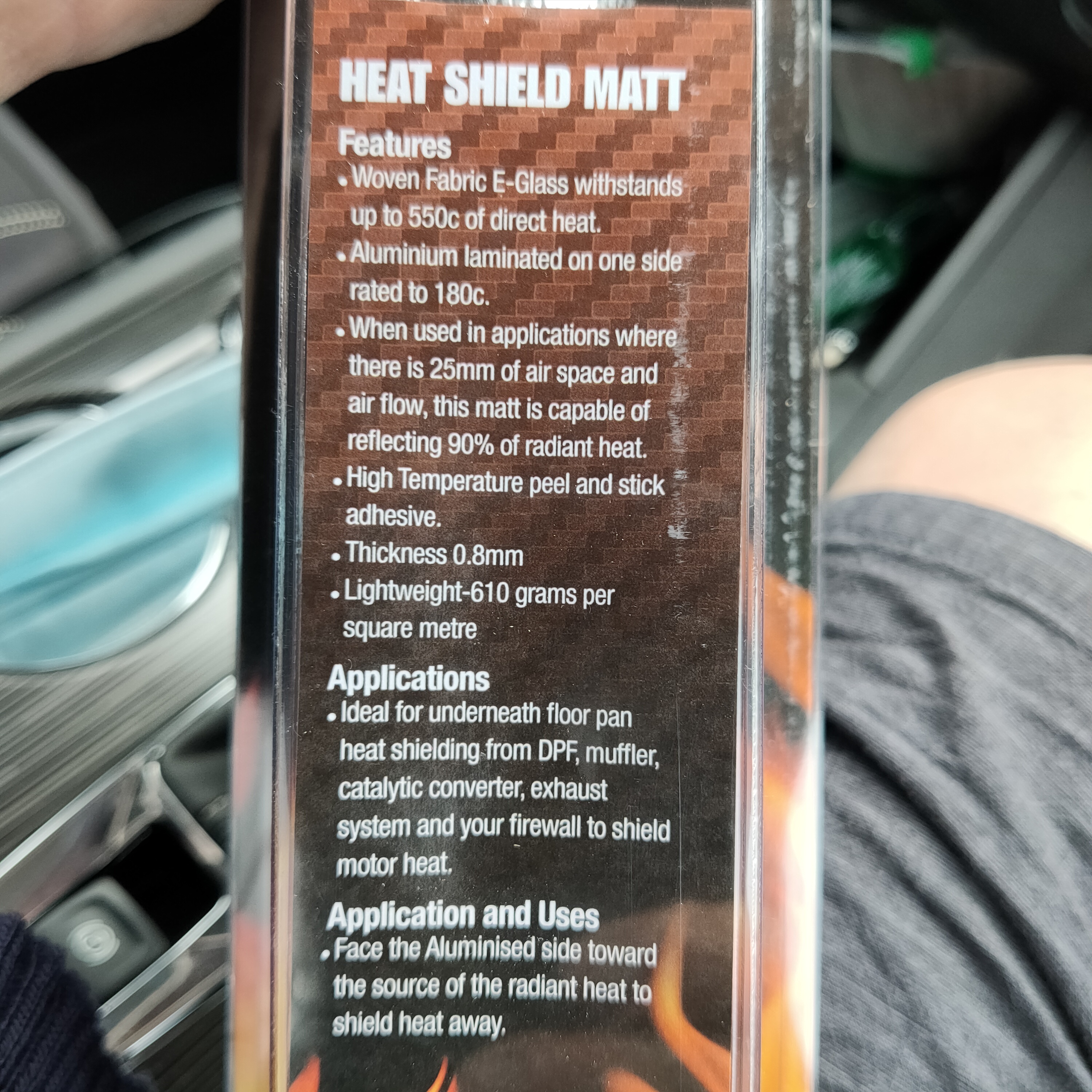 It is called Heat Protection Products heatshield. Several variations of it available. I bought the rolled up sheet with a self adhesive backing. I will get a photo of it later. You can use multiple layers if you want to. I have 2 layers on the front shield simply to use up all the sheet. It moulds to the shapes of the shields too, great stuff to work with. And yes, it has definitely made a difference.