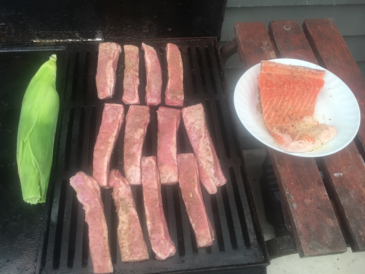 Thanks @Sandi T., Mrs Dartplayer enjoyed her crispy skin Salmon on a bed of green beans accompanied by fresh corn on the cob and kumara (sweet potato) salad. As she does most of the cooking at home, she enjoys my fare while on holiday. I had slow cooked merino lamb spareribs the Rose is light, fruity and very easy to drink