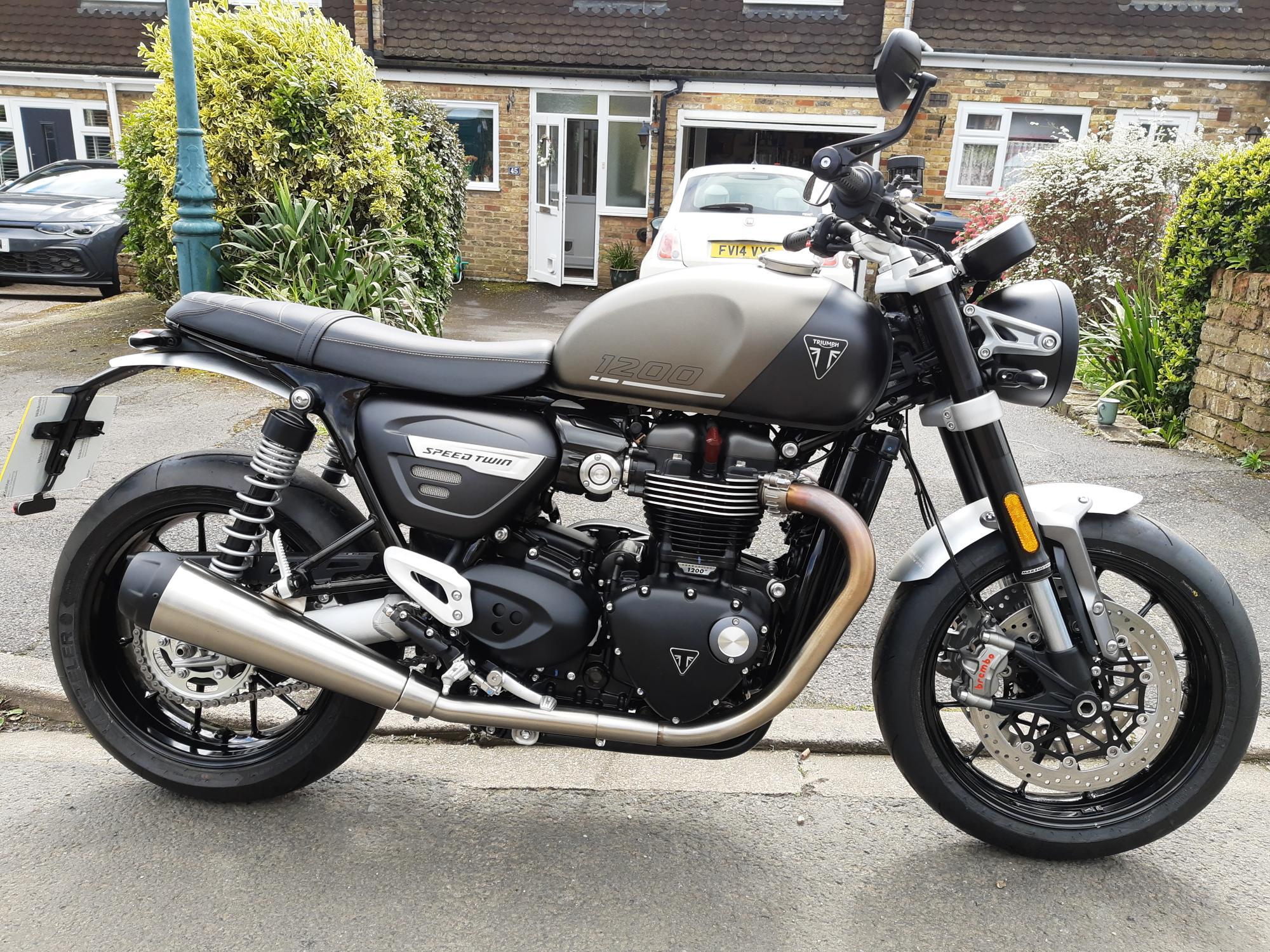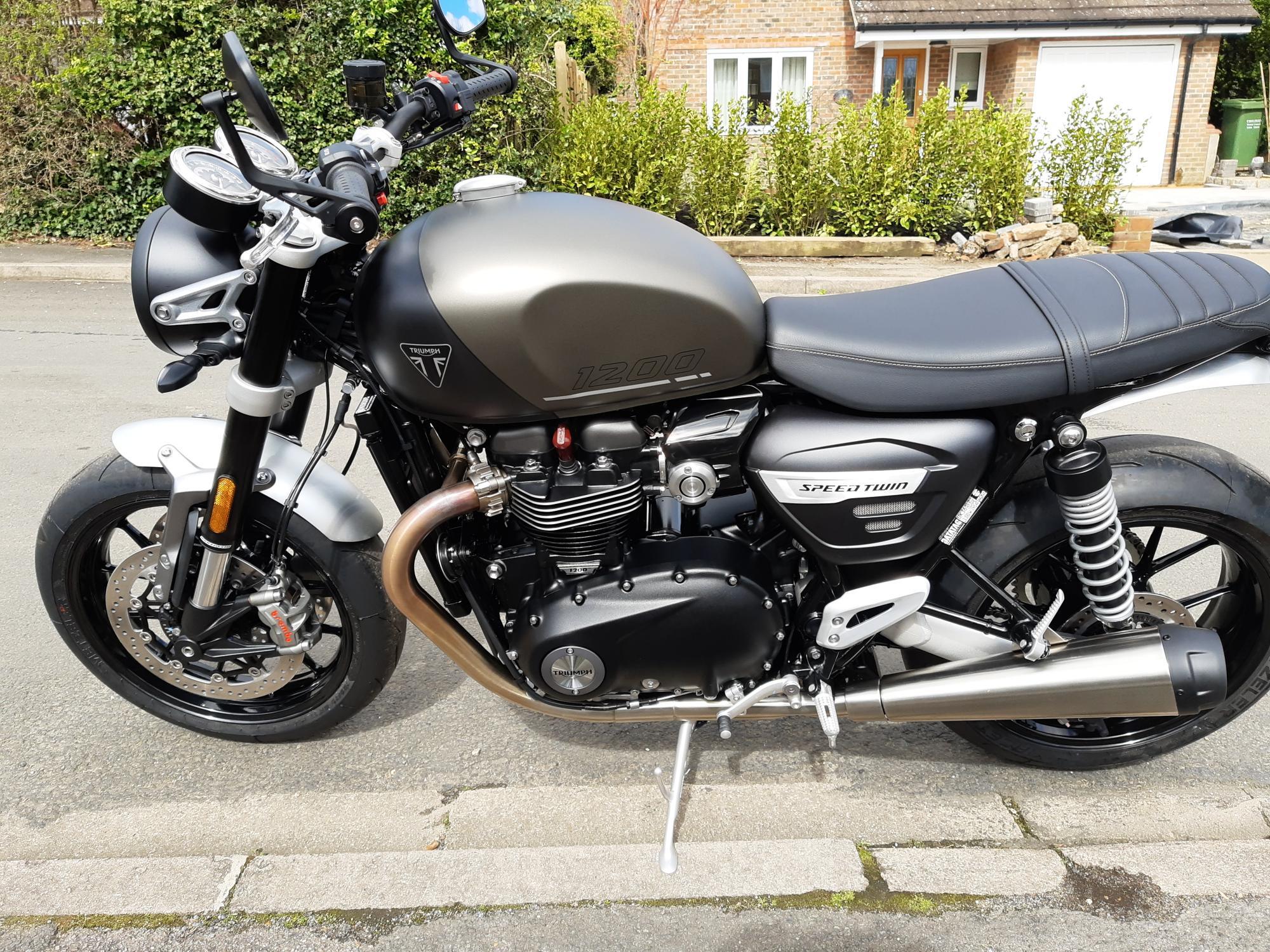 A brand new Speed Twin to replace my Thruxton! Big discount off new price. Don't think it will replace the loss of my Thruxton but will certainly help ease the pain.